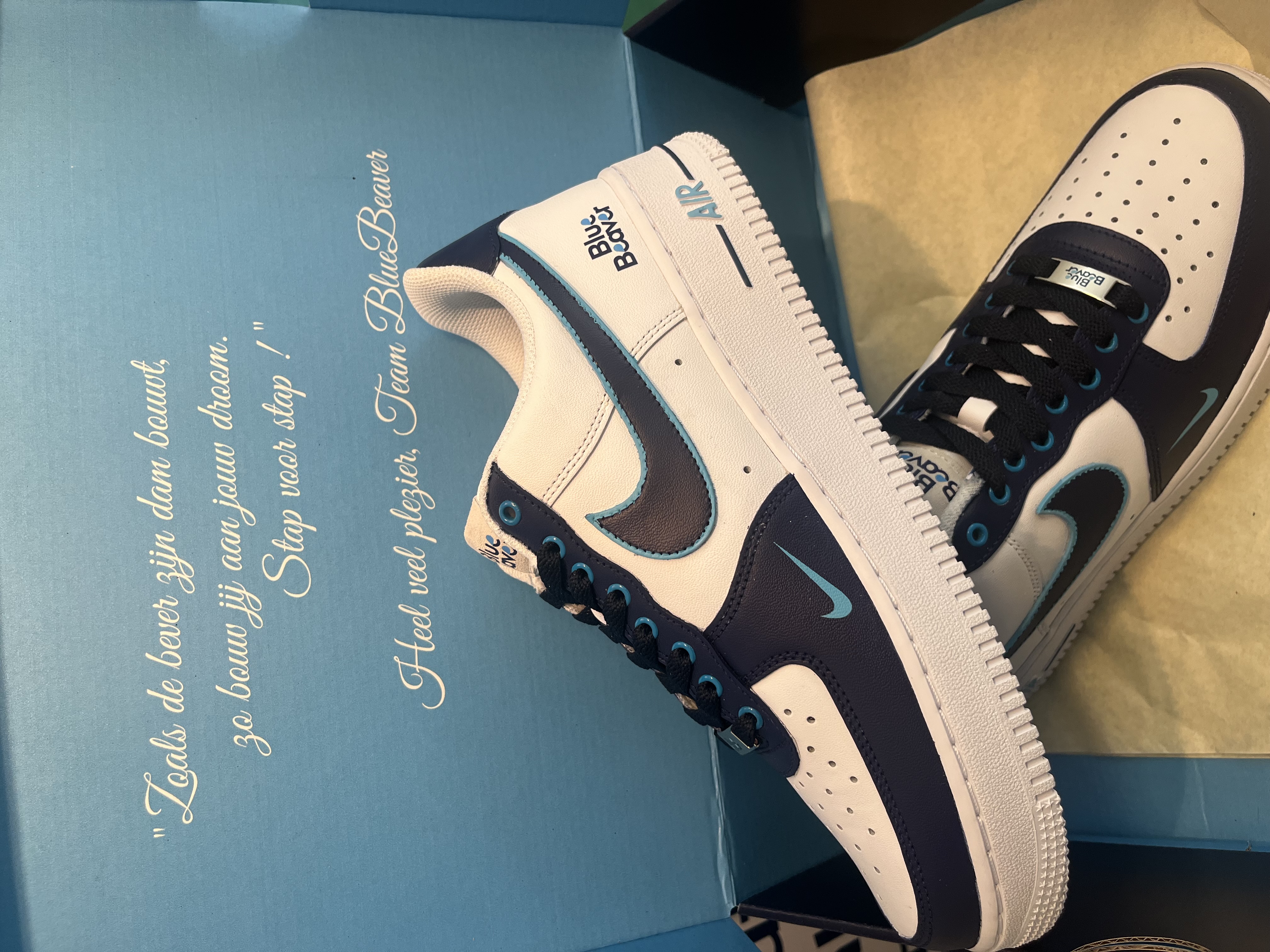 Blue Beaver bestaat aankomend jaar alweer 5 jaar! Ter gelegenheid van deze mijlpaal, hebben we samen met Sam van IJzendoorn van Vijz, onze "Blue Beaver x Vijz sneakers" ontworpen. Het eerste exemplaar is overhandigt aan onze eigen Alfred, manager projecten én sneakerfanaat.
